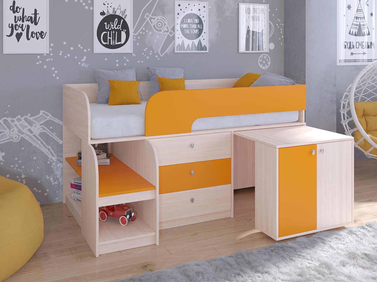 Отзывы о Столплит Кровать-чердак Астра 9 V7 Дуб молочный Оранжевый