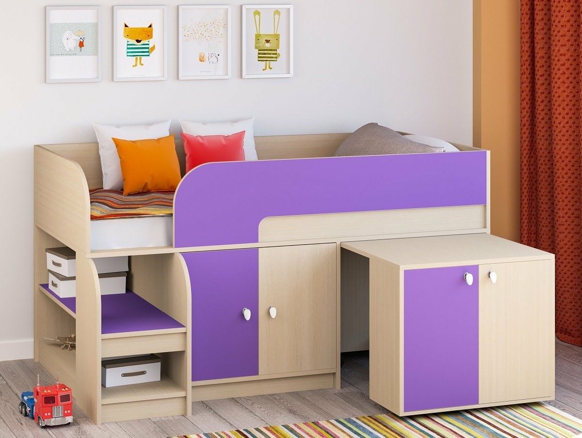 Отзывы о Столплит Кровать-чердак Астра 9 V8 Дуб молочный Дуб млечный / фиолетовый