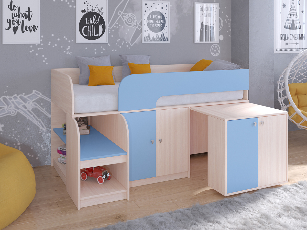 Кровать-чердак Астра 9 превосходно подойдет для детей раннего возраста. Компактная конструкция кровати позволяет сэкономить место в комнате и в то же время хранить массу необходимых вещей. Вместительный шкафчик позволит разместить в своих недрах детскую одежду. А выкатной стол позволит ребенку заниматься разнообразным творчеством. Удобный шкафчик с полочкой, расположенный в ножке стола, позволит аккуратно хранить многочисленные карандаши, фломастеры, краски и другие инструменты для творчества.