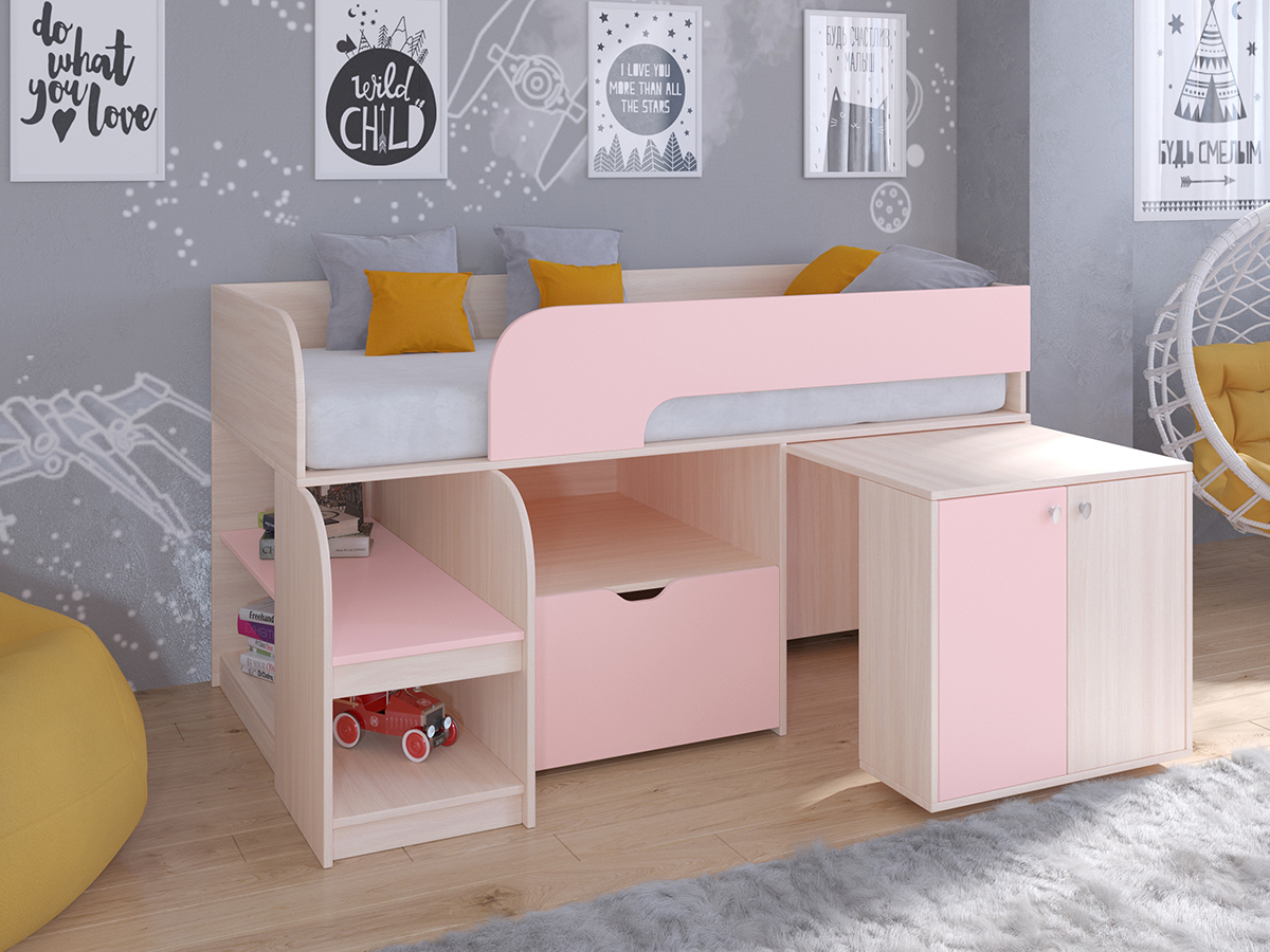 Кровать-чердак Астра 9 V9 Дуб молочный (Розовый)