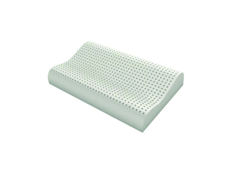 Перфорированный латекс на натуральной основе придаёт подушке анатомическую мягкость. Эргономичная форма позволяет правильно поддерживать голову во время сна и расслаблять мышцы шеи. В комплект входит наволочка из отбеленного поликоттона и трикотажный чехол Высота волны - 11 см., середины - 8 см.