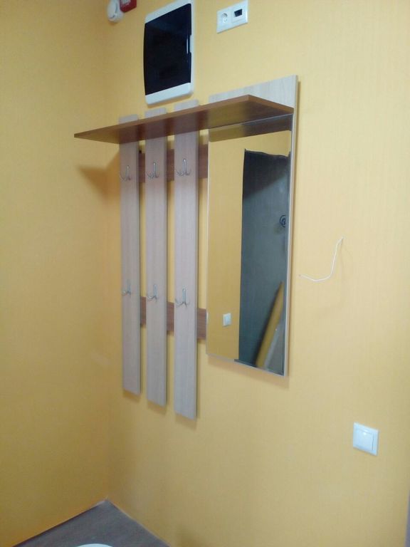 Открытая навесная вешалка на 6 крючков с полкой и зеркалом