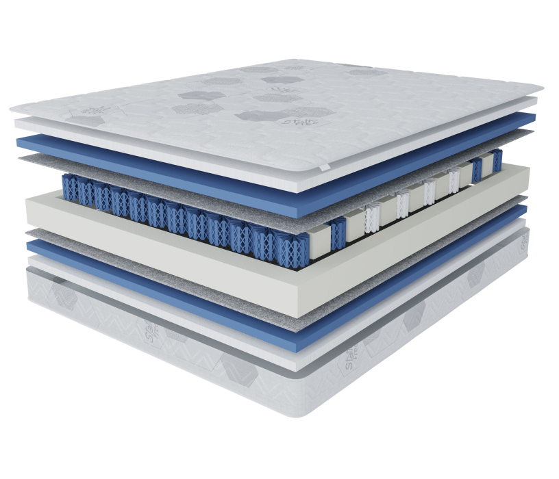 Матрас имеет 3 зоны жесткости для индивидуальной поддержки каждой части тела. Жесткость каждой зоны подобрана таким образом, чтобы обеспечить надежную опору позвоночнику, сохраняя его в правильном положении. Такие свойства матраса с использованием индивидуального зонирования максимально усиливают поддерживающий эффект более тяжелых частей тела и позволяют матрасу хорошо подстраиваться под контуры человеческого тела.
