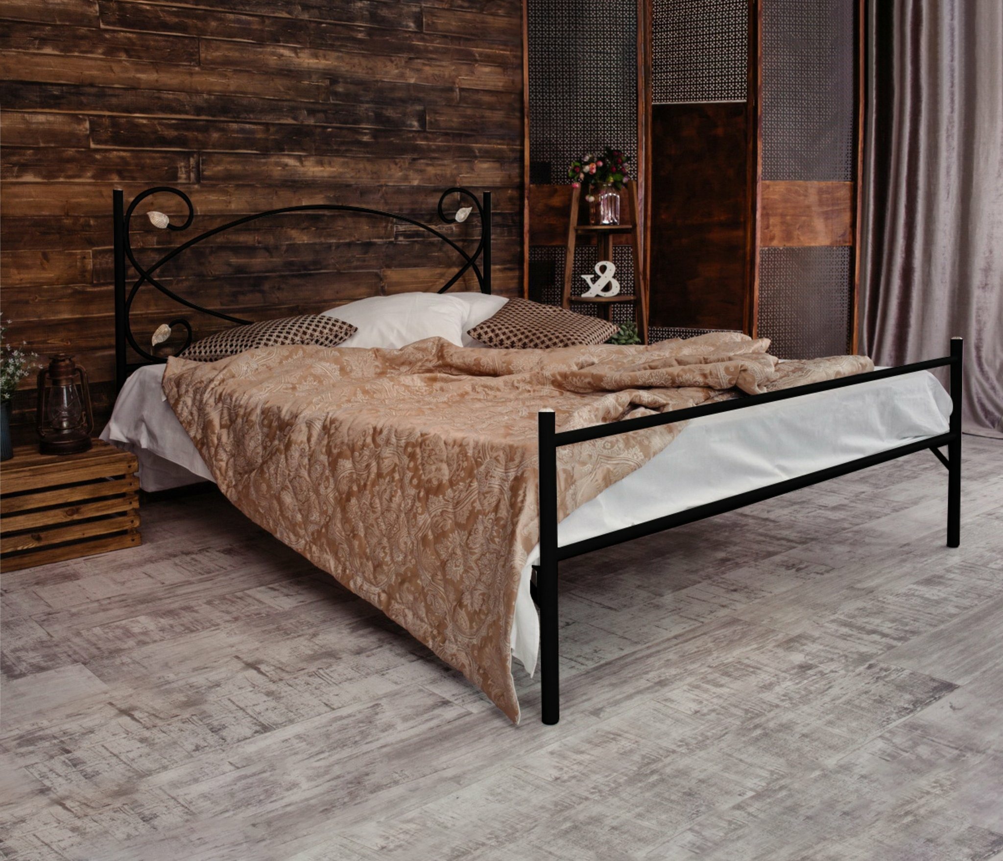 Кованая кровать Виктория 1.8 с одной спинкой (Черный)