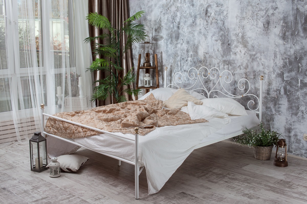 Белоснежный цвет кованой кровати Кармен делает ее конструкцию еще более утонченной и изящной, позволяя ей гармонично дополнить интерьер как в аристократичной классической, так и в современной стилистике.