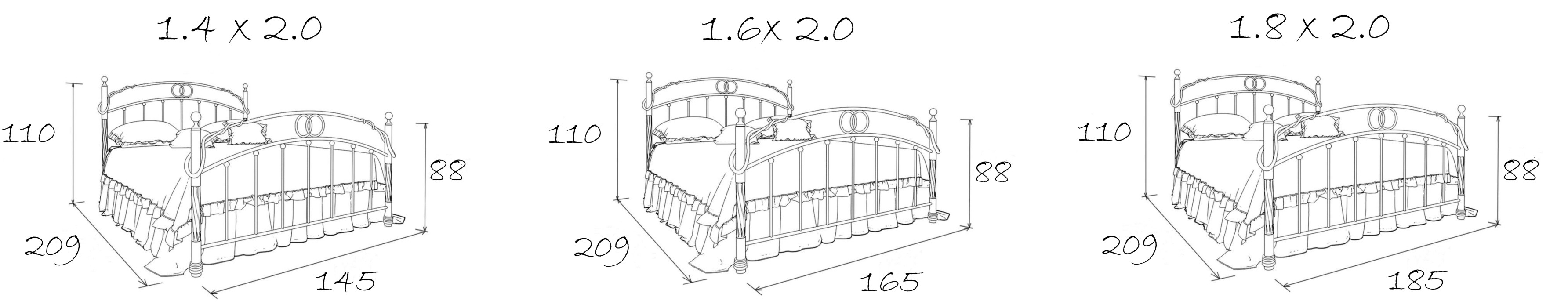 Размеры спального места (ДхШ) 2000х1400. Высота изножья 880 мм.
