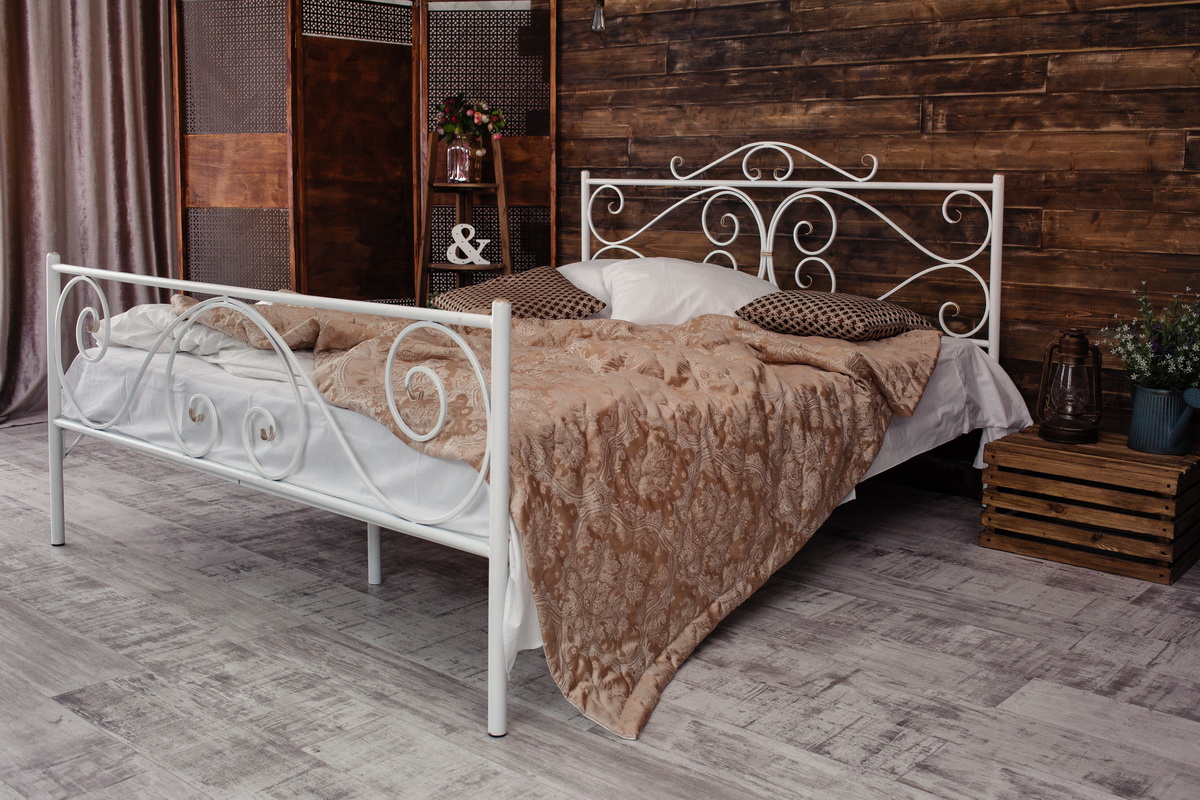 Воздушность и изысканность кованой кровати Валенсия прекрасно сочетаются с ее долговечность и надежностью, обеспеченными качественными и прочными материалами изготовления.