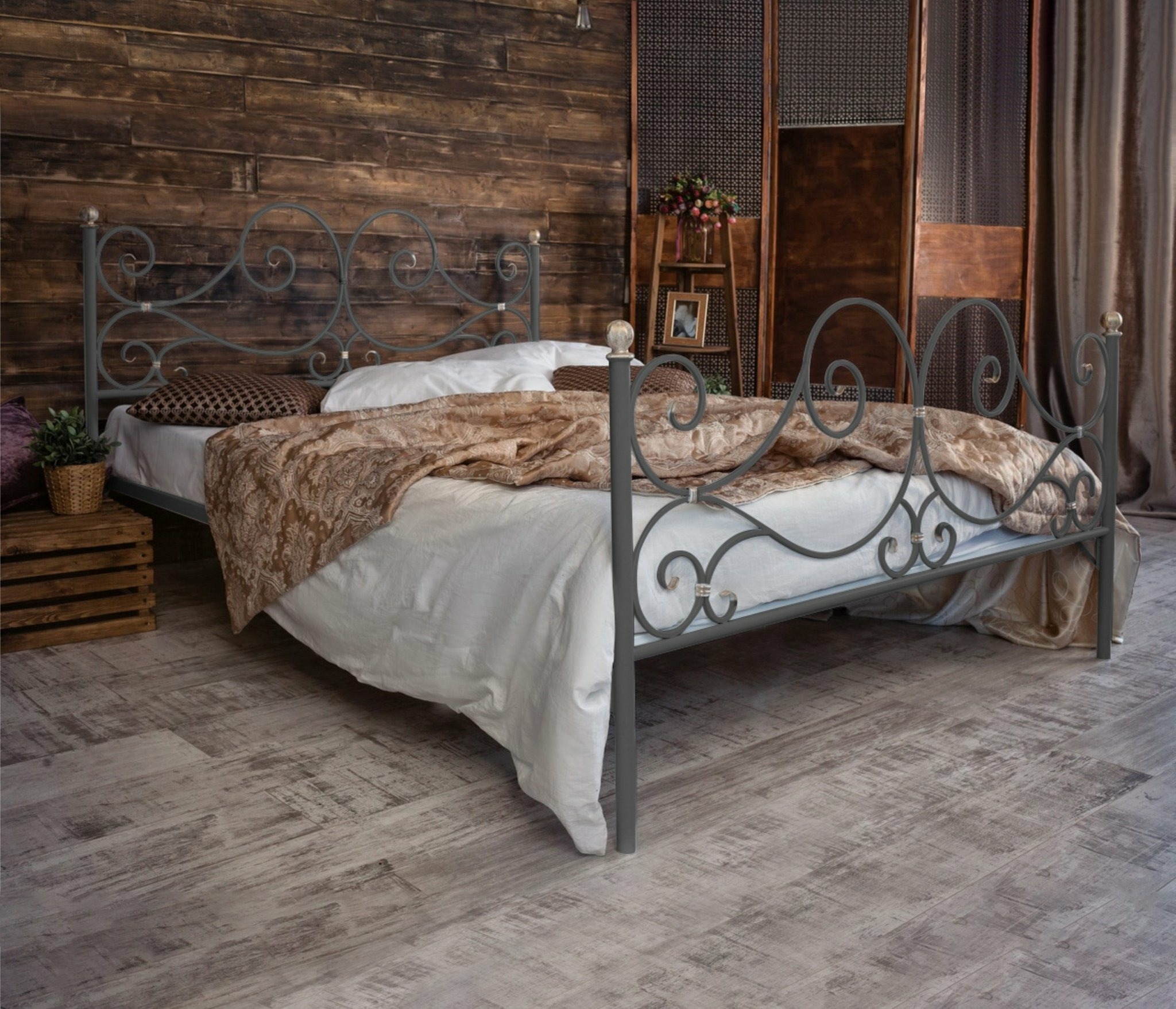 Кованая кровать Верона 1.4 с двумя спинками (Серый)