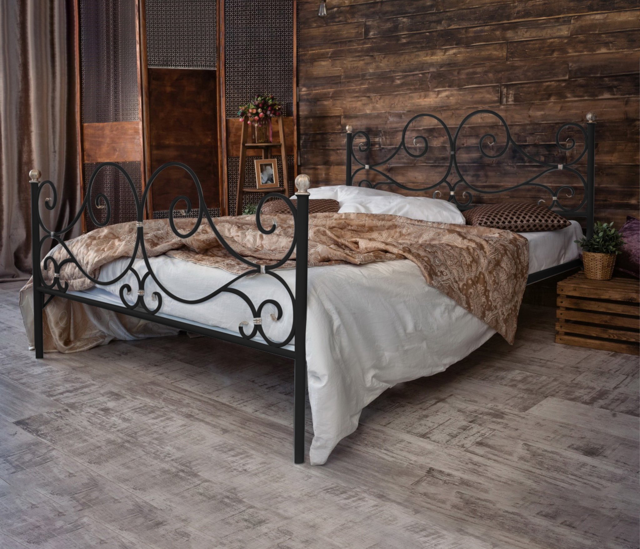 Кованая кровать Верона 1.6 с двумя спинками (Черный)