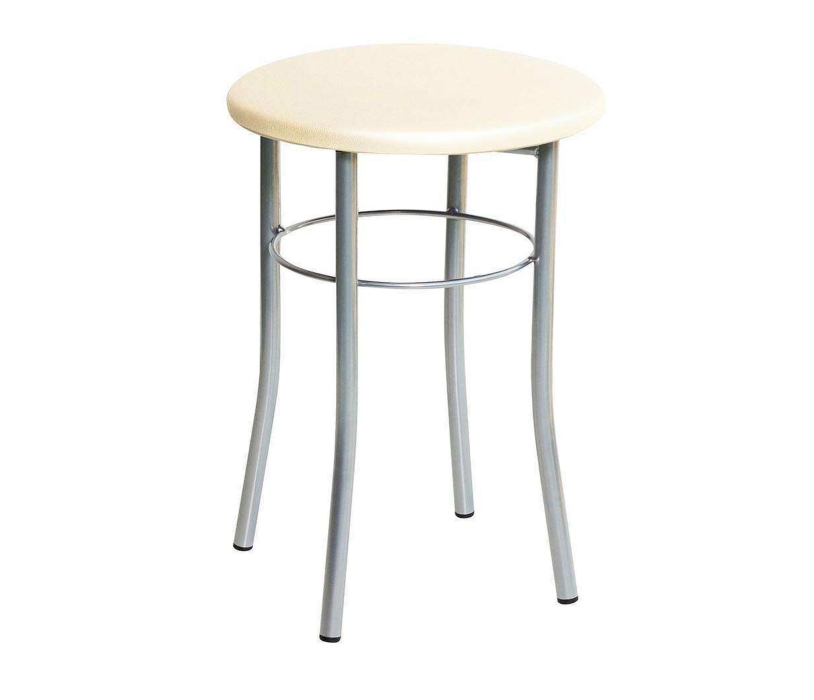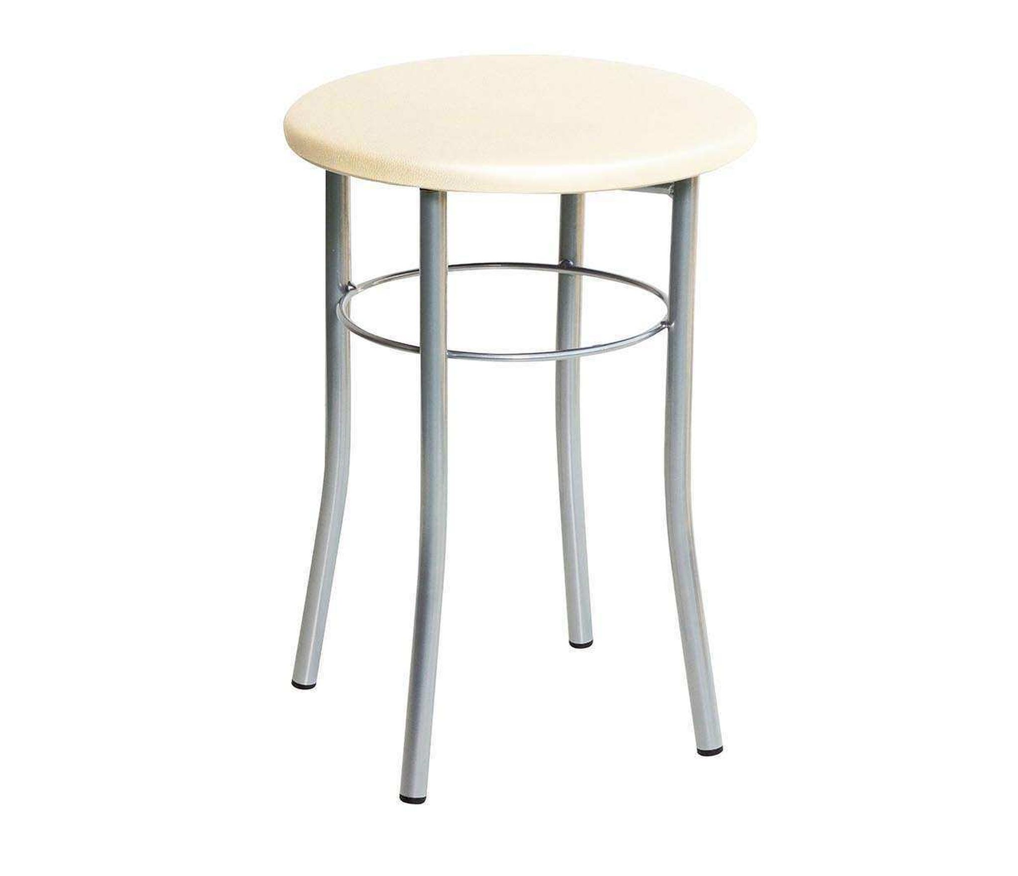 Табурет Экстра - это прочный и удобный табурет на металлическом каркасе. Окрас металлического каркаса - серебро. Обивка сиденья -мягкая бежевая экокожа с перламутровым отттенком. Диаметр трубы 20 мм, толщина трубы 1,2мм. Прочный поверхностный слой окраса, окрас производится полимерным порошком с поледующей полимеризацией. Дополнительная прочность обеспечивается металлическим кольцом, которое приварено к ножкам табурета.