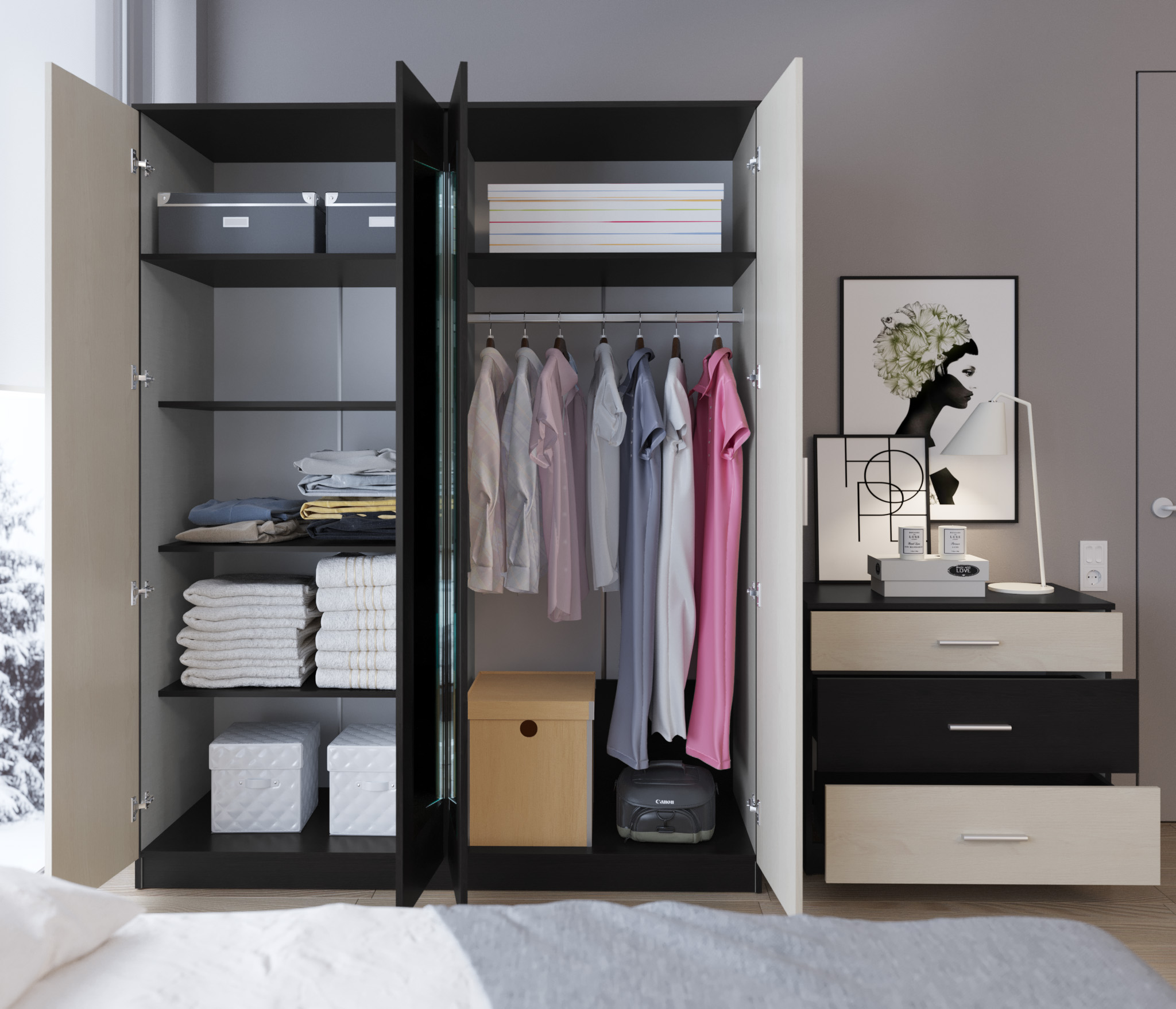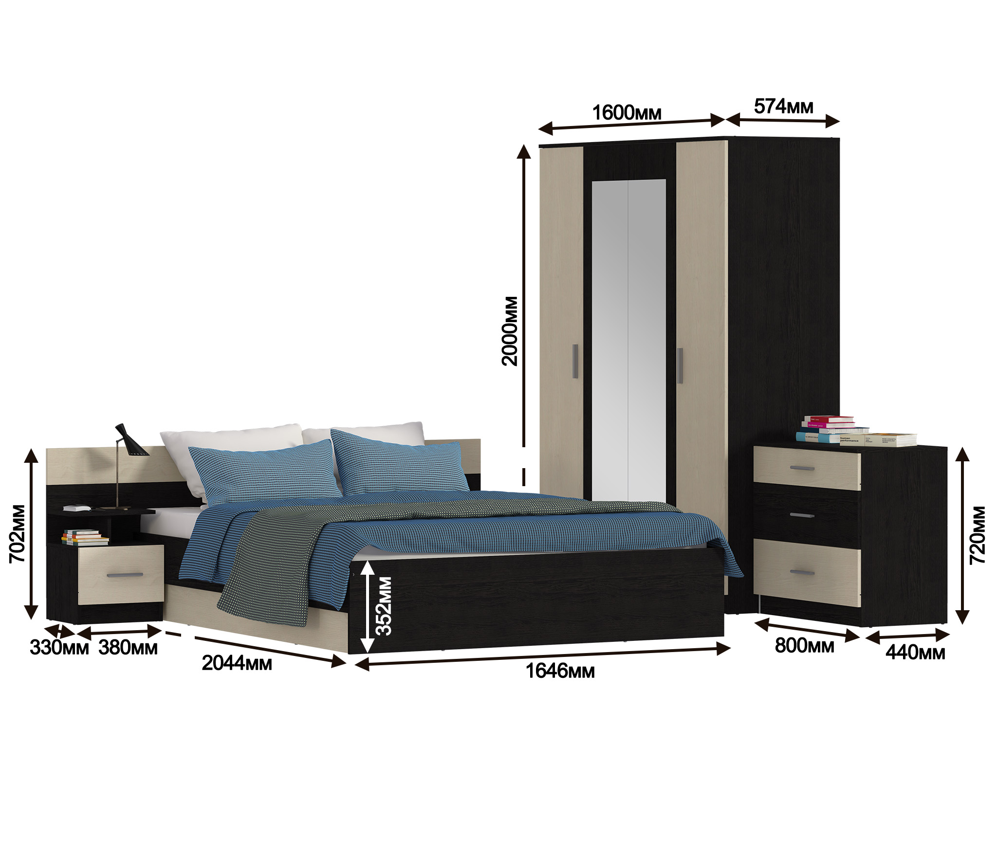 Удобный комплект, шкаф и комод вместительные. Отличное сочетание цена-качество