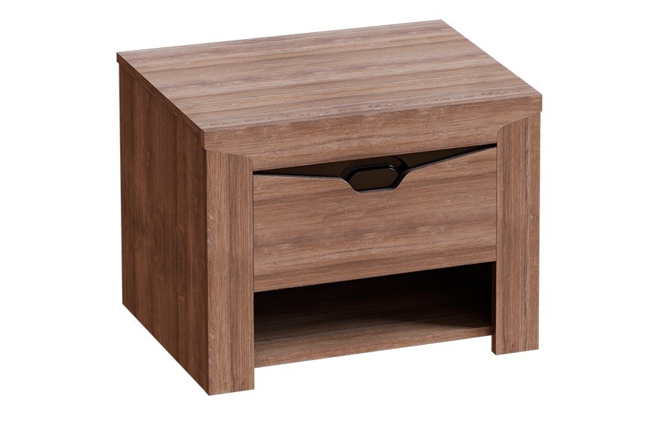 Прикроватная тумба Сорренто — мебель и функциональная, и стильная. Она выполнена в модном цвете натурального дуба, отлично сочетается с другой мебелью одноименной коллекции. Модель достаточно вместительная, в двух отделениях и на поверхности можно найти место множеству мелочей. Особый шарм изделия заключен в выдвижном ящике, верхняя часть которого имеет экстравагантный вырез и темную ручку. Эта тумбочка устойчива и не будет покачиваться от неосторожного движения, что особенно важно, если там стоит стакан с водой или хрупкие предметы.
