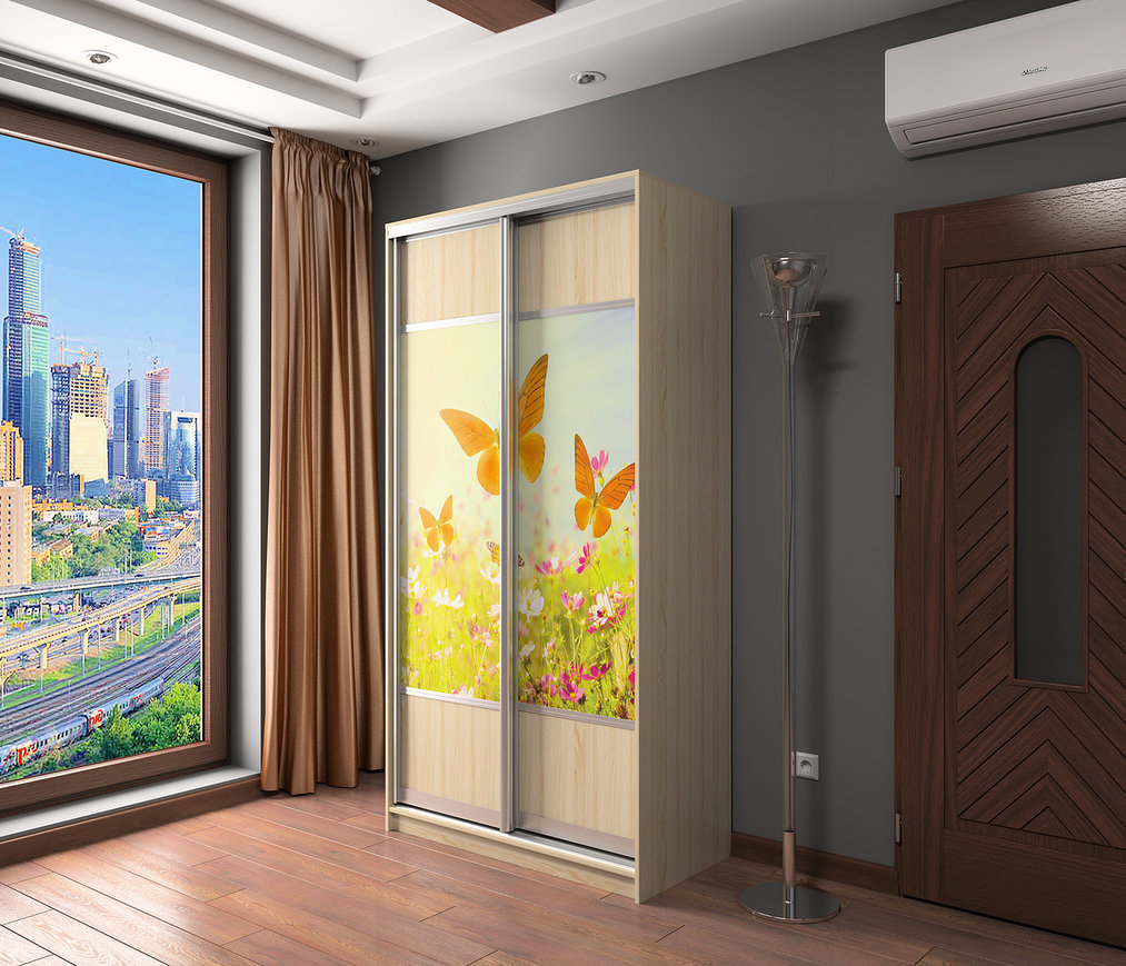 Шкаф-купе Бостон 1100х540х2150 Фотопечать Бабочки (Дуб Сонома)