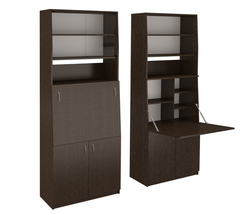 Шкаф-секретер это удачное сочетание приемлемой цены и высокого качества. Система хранения шкафа представлена двумя закрытыми секциями, открытой полкой и застекленной витриной. На полке будут особенно удачно смотреться книги, сувениры или необычные предметы декора. Стеклянные дверцы позволят защитить содержимое от пыли, а закрытые отделения — держать необходимые вещи не на виду, но так, чтобы они находились под рукой.Изготовлен шкаф из качественной ЛДСП.