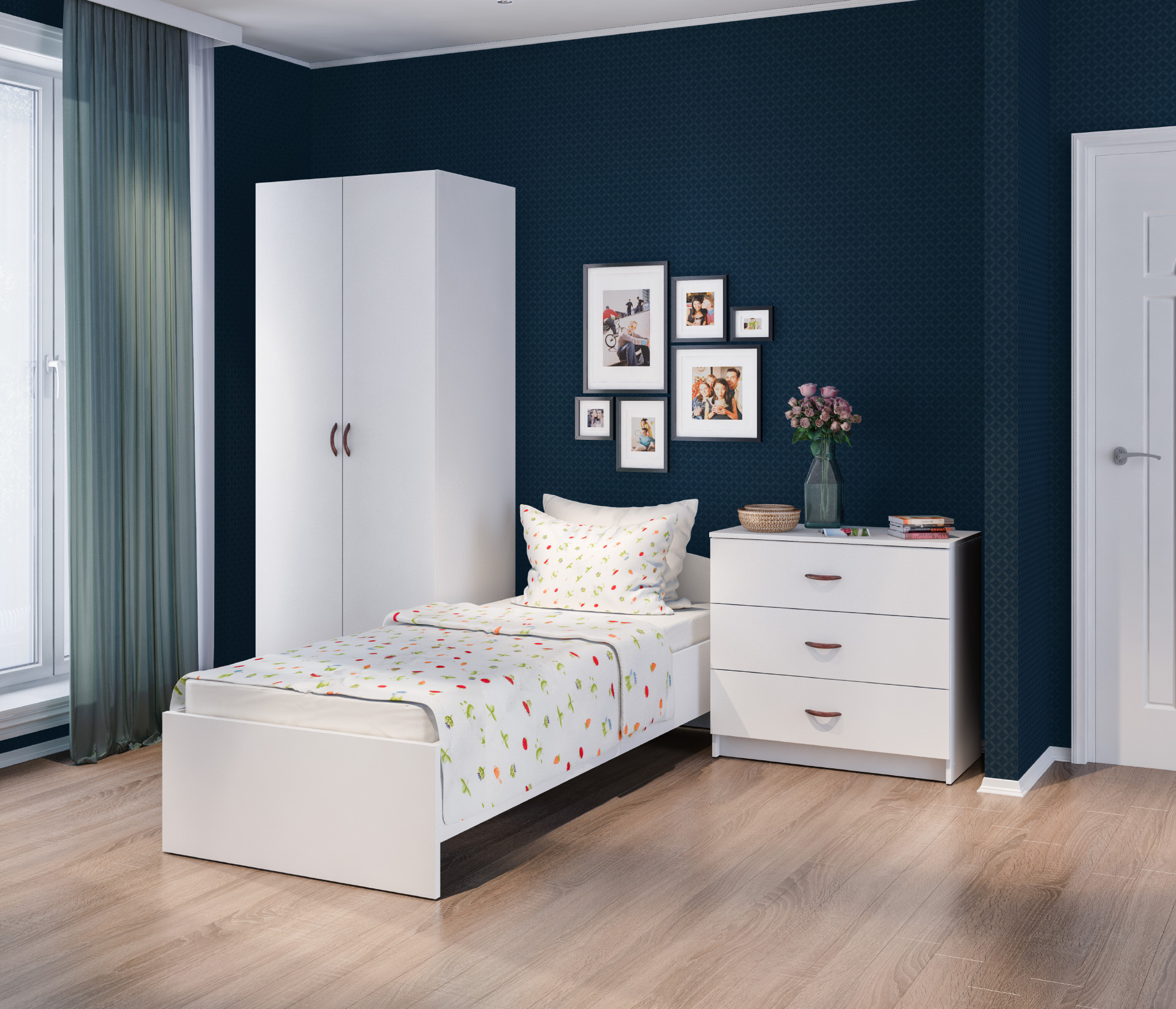 Белая или темная небольшая кровать Терра по доступной цене – хороший вариант для спальни или детской. Приятные цвета украсят любой интерьер и сделают его наиболее современным, а качественные материалы ДСП и ЛДСП экологичны и безопасны. Размер спального места 800*2000 мм. Ортопедическое основание и матрас приобретается отдельно. В комплект можно приобрести шкафы и тумбы из той же коллекции.