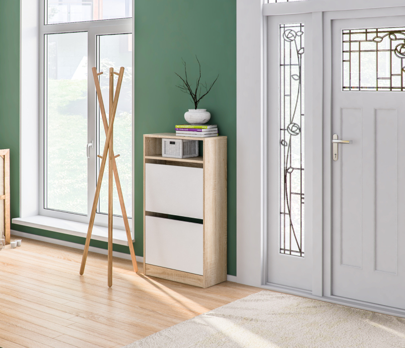Тумба для обуви Мамбо СБ-2793 (Дуб Сонома/Белый)