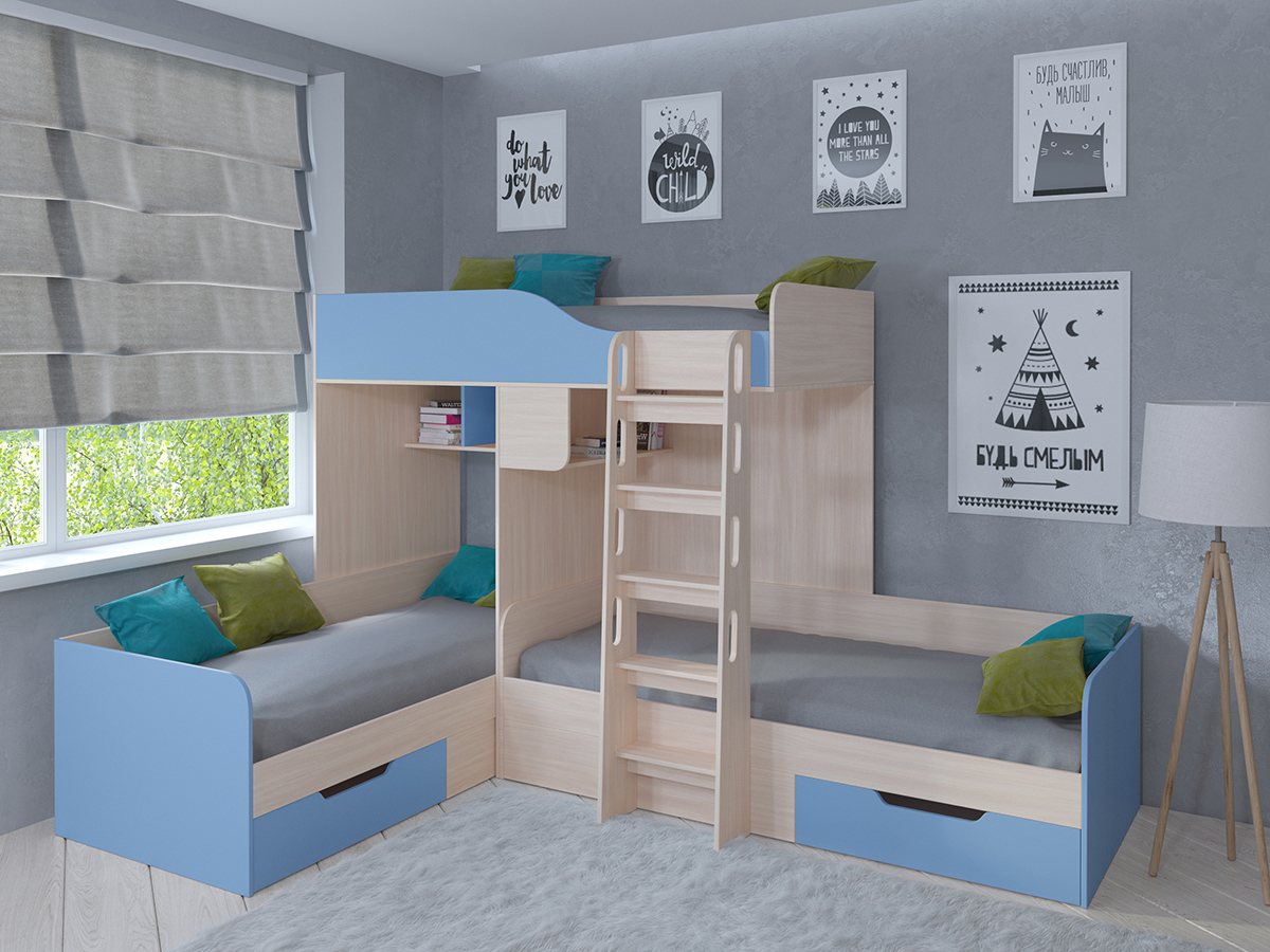Отзывы о Столплит Кровать двухъярусная Трио Дуб молочный Голубой