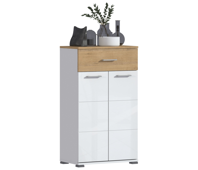 Материал фасадов комбинированный: МДФ Белый глянец / ЛДСП Дуб Бунратти