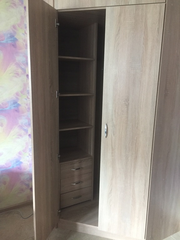 Шкаф большой, вместительный, красивый, цвет очень красивый. Мне очень нравится что есть ящики.