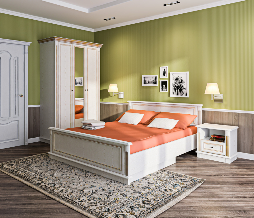 "Кровать коллекции Версаль украсит интерьер любой спальни. Стильная и практичная модель, выполнена в классическом стиле из прочного материала в цвете Белый Ясень.