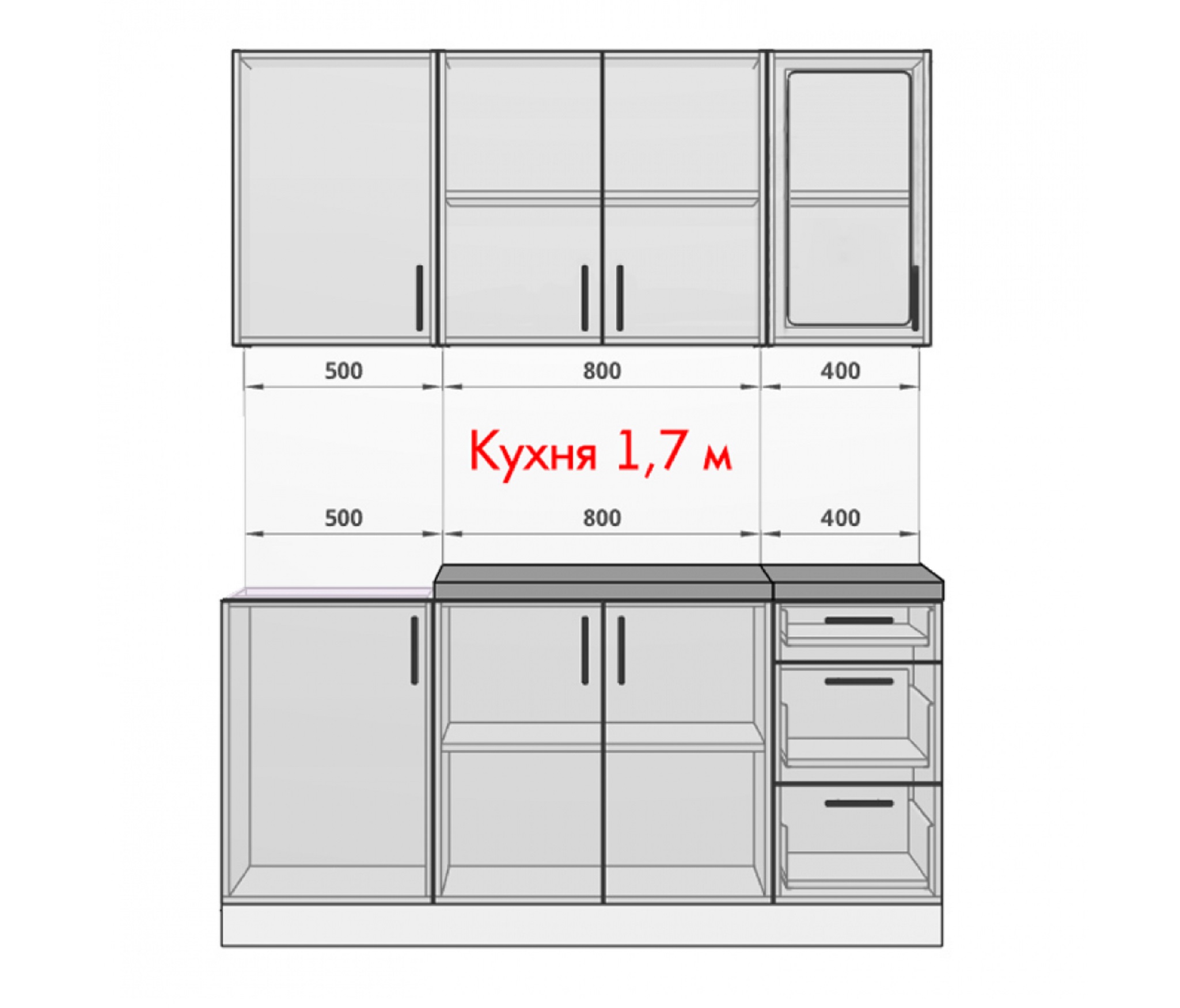 Кухня Констанция — стильный гарнитур, изготовленный на каркасе ЛДСП белого цвета, фасады МДФ, стекла с пескоструйным рисунком, ручка Скоба 96 металлическая.