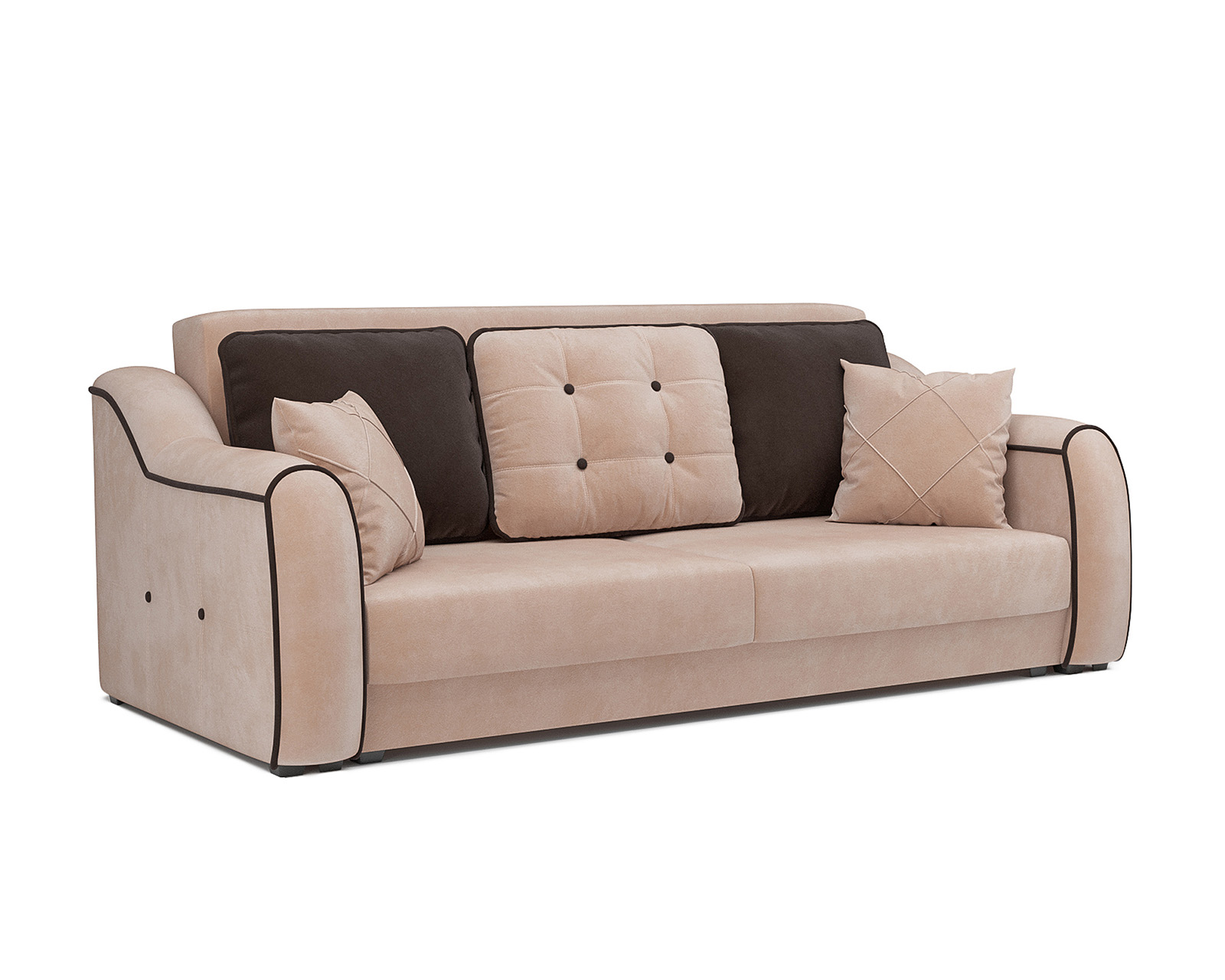 Прямой диван Френсис украшен декоративным кантом, пуговицами, отстрочкой, утяжками на подушках и подлокотниках. Глубина данной модели дивана достаточно просторная, а упругие подушки обеспечивают комфорт время провождения.