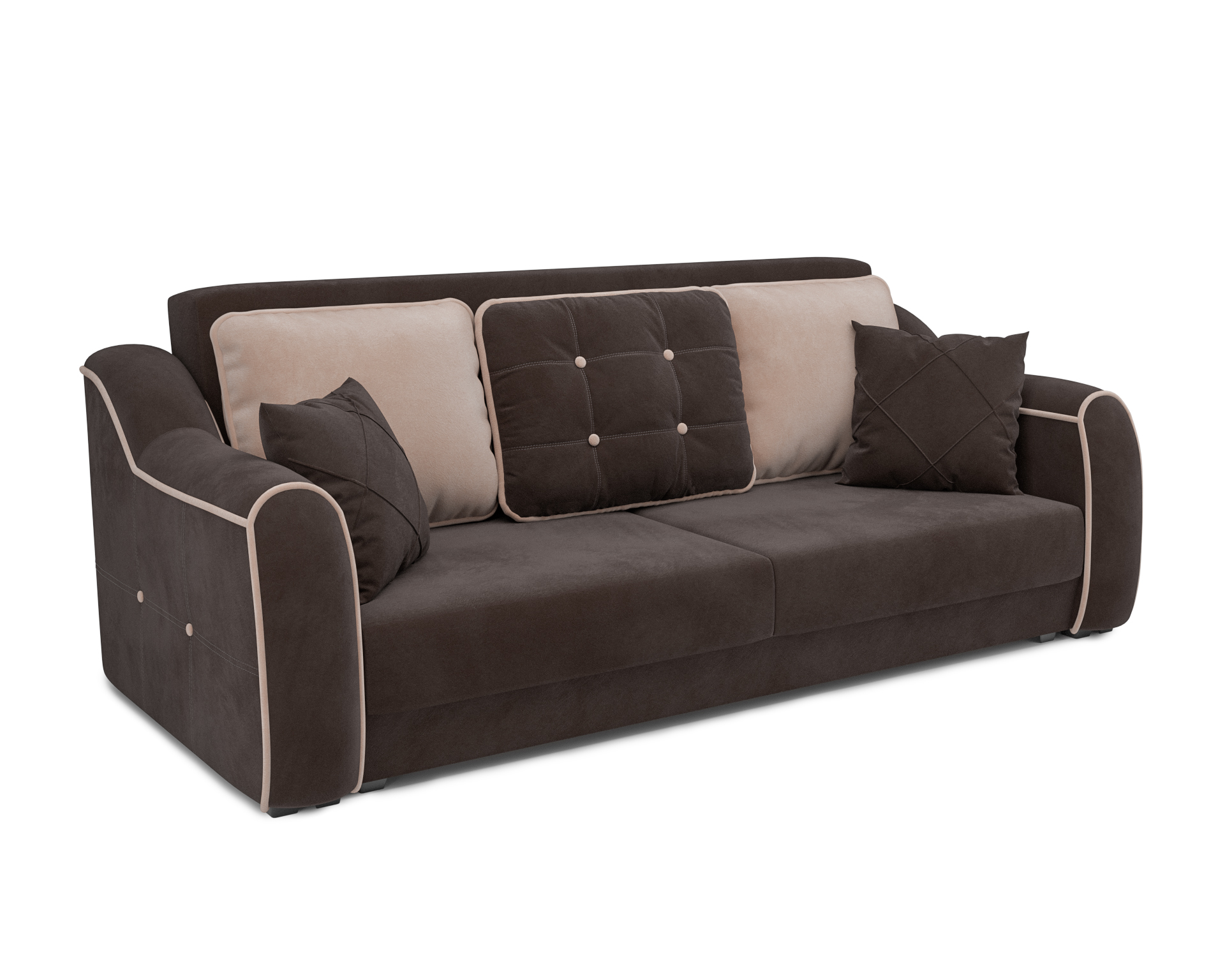 Прямой диван Френсис украшен декоративным кантом, пуговицами, отстрочкой, утяжками на подушках и подлокотниках. Глубина данной модели дивана достаточно просторная, а упругие подушки обеспечивают комфорт время провождения.