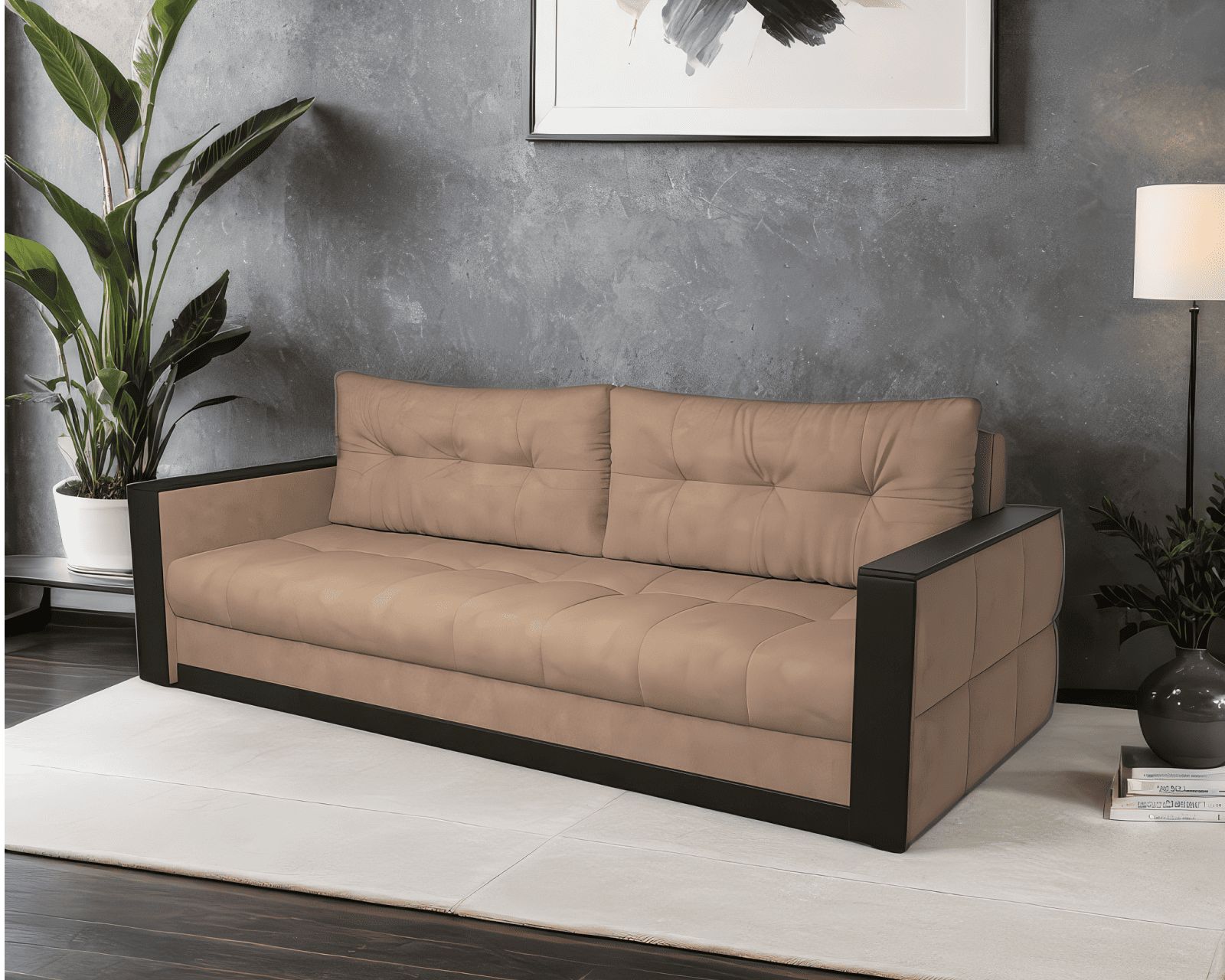 Механизм трансформации «еврокнижка» раскладывает диван в полуторную кровать. Получается просторная и ровная поверхность.