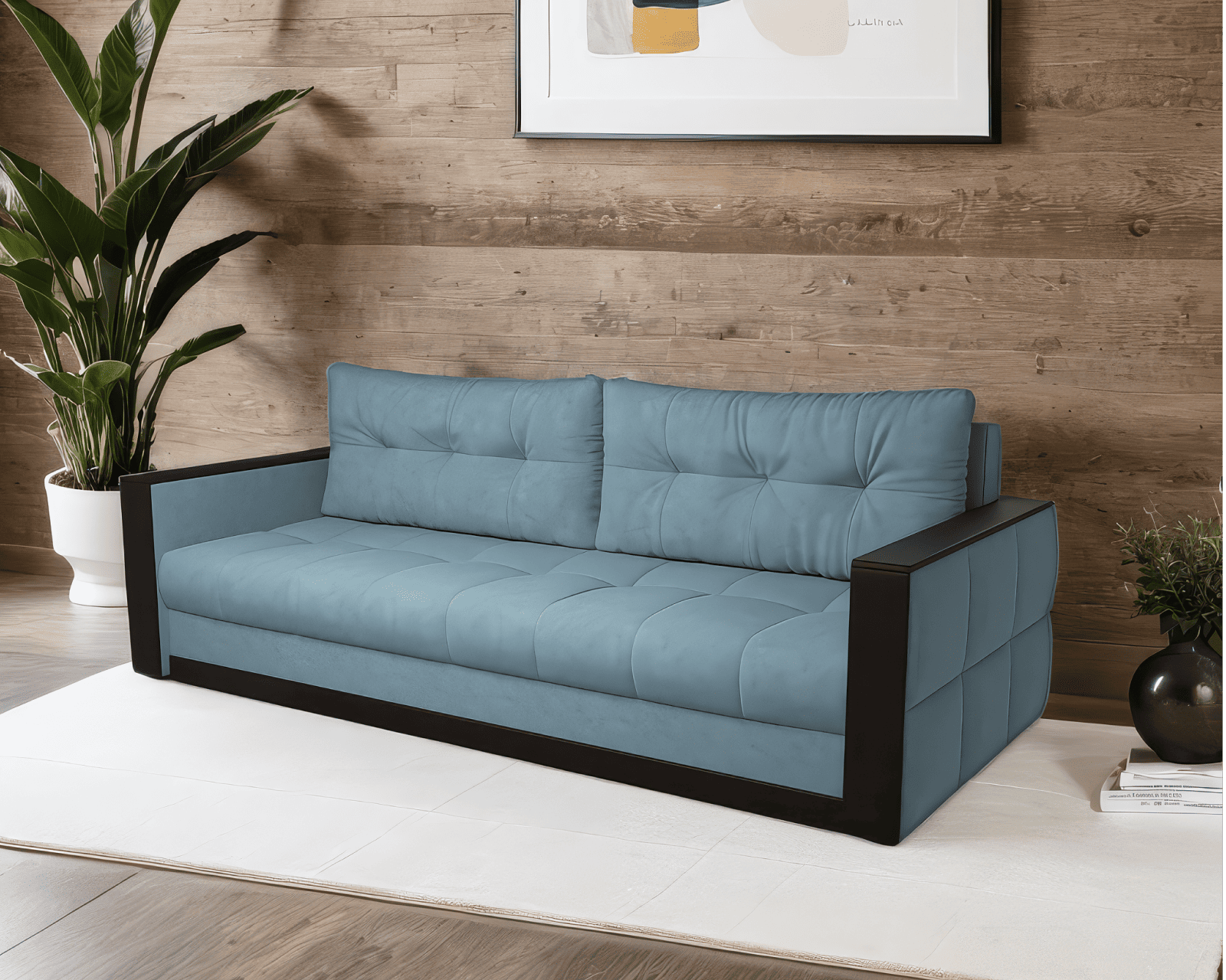 Габариты размером 230х86х100 см отлично подойдут для большой семьи, легко раскладывается, обеспечивая спальное место 150х195 см.
