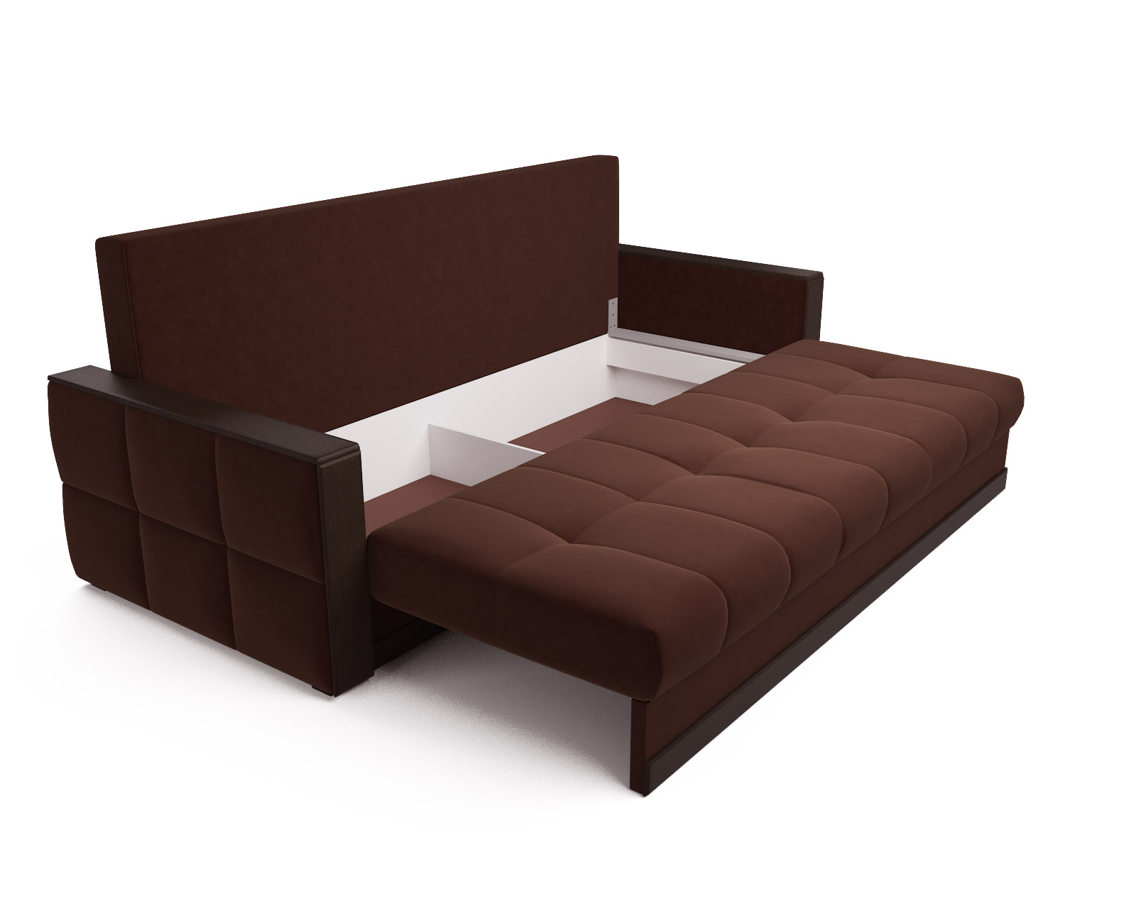 Механизм трансформации «еврокнижка» раскладывает диван в полуторную кровать. Получается просторная и ровная поверхность.