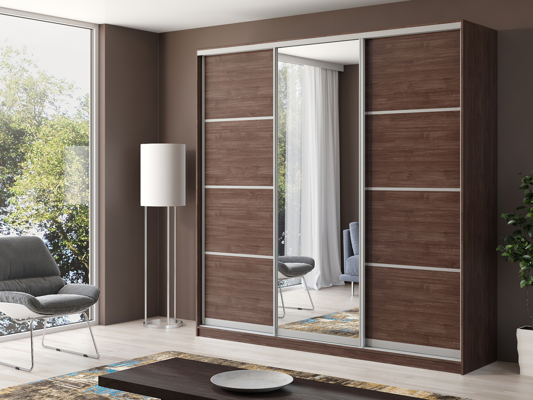 Шкаф купе 3-х дверный Айсберг 240+зеркало (Шамони темный)
