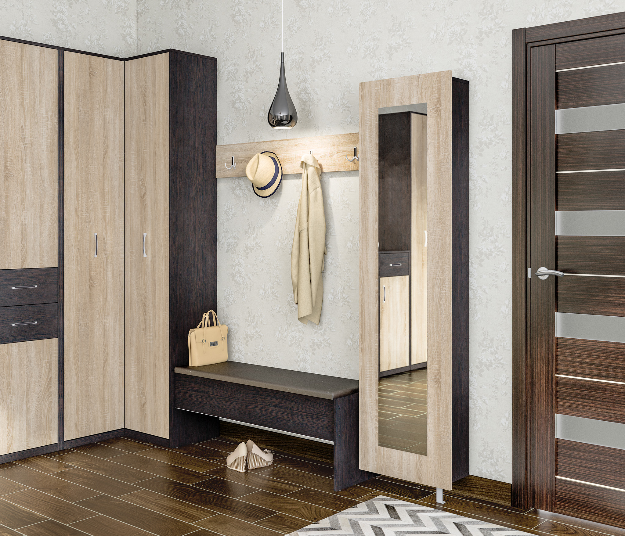 Корпус из КДСП, сиденье обтянуто искусственной кожей. Под сиденьем вместительный ящик для мелочей.