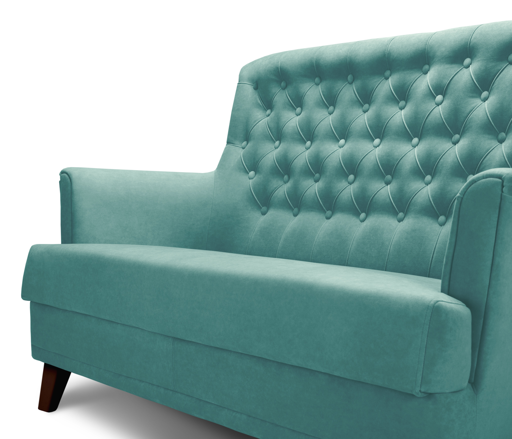 Отделка спинки выполнена с декоративной прострочкой и украшена пуговицами.Ножки дивана выполнены из массива березы для наибольшей устойчивости.