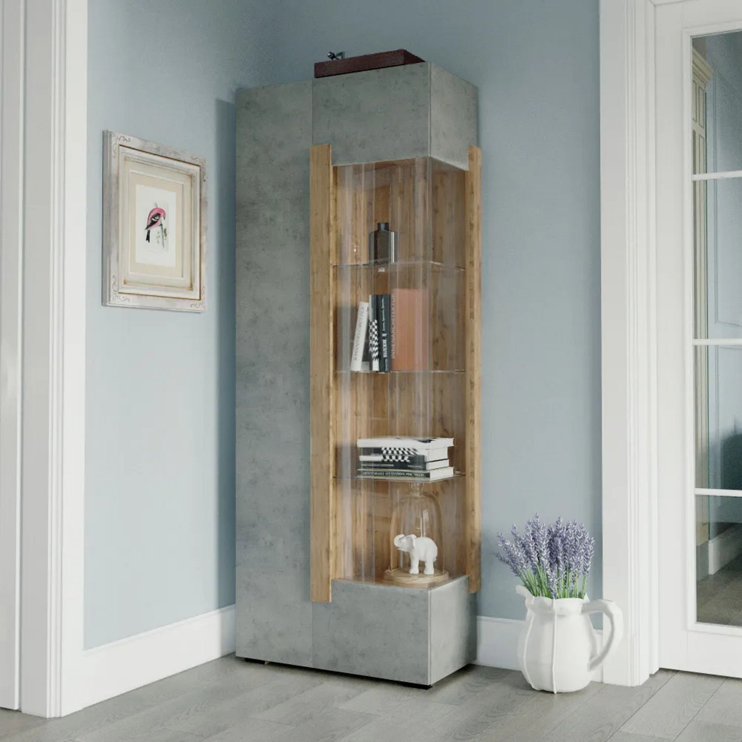 Отзывы о Столплит Шкаф-витрина двухдверная 1995х766х395 мм Дуб ватан / Бетон чикаго