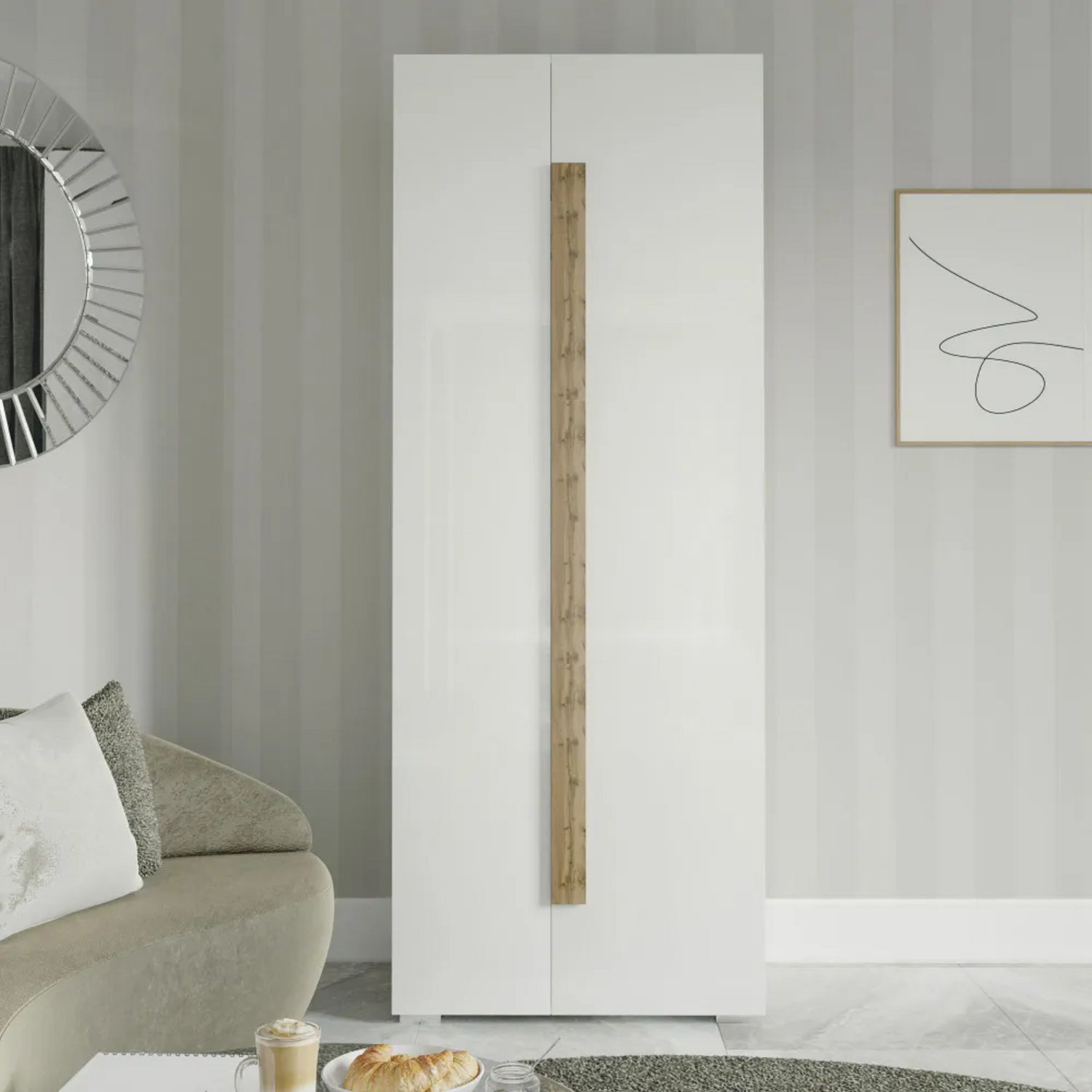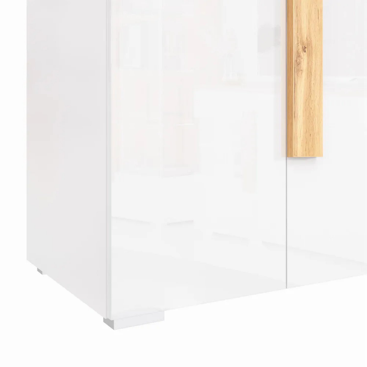 Глянцевый фасад добавляет элегантности и изысканности этому шкафу. Он привлекает взгляды своим блеском и создает ощущение роскоши в любом помещении. А текстура натурального дерева придает шкафу особый шарм и теплоту.
