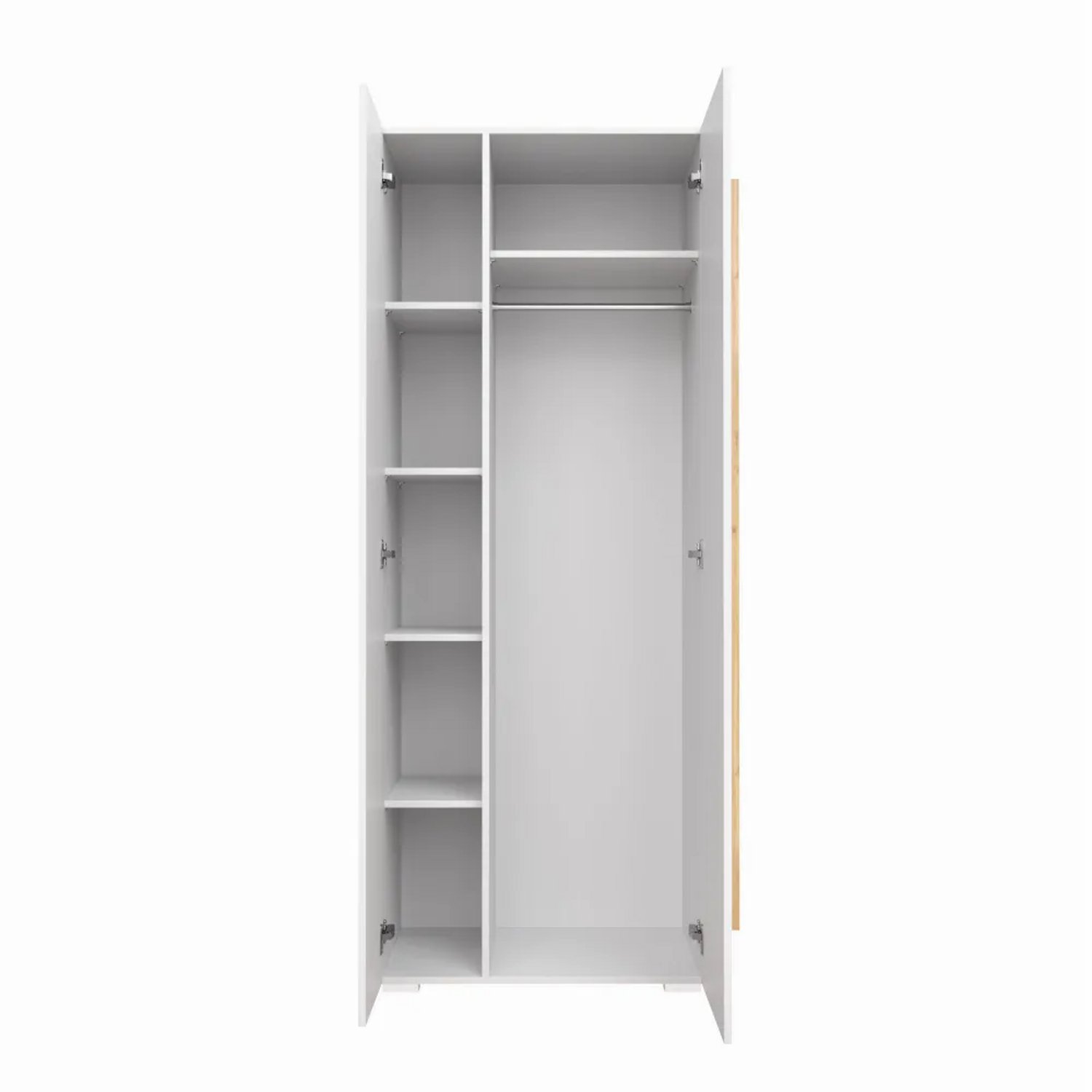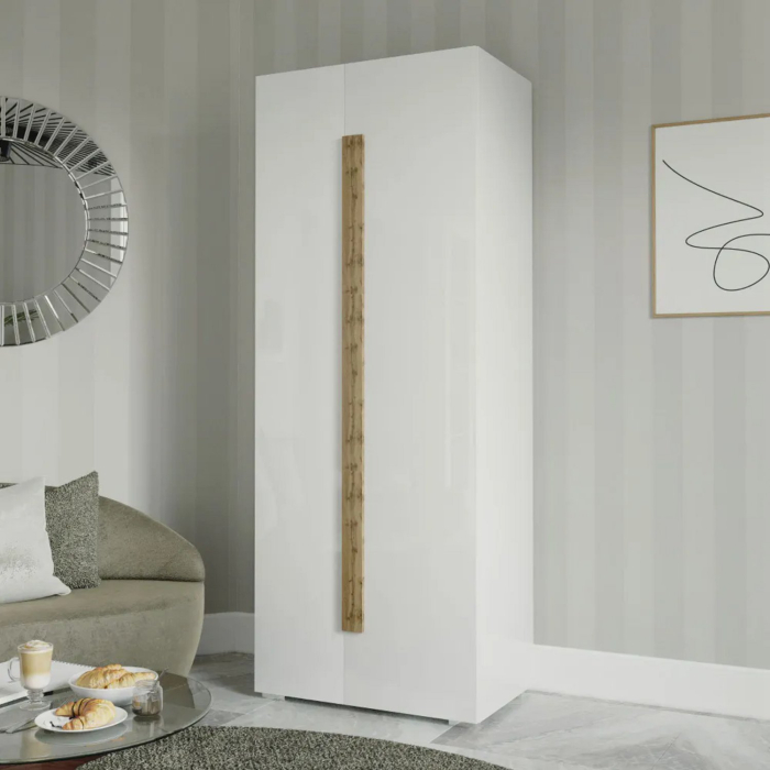 Дверцы этого шкафа открываются нажатием, что делает использование максимально удобным и практичным. Вы сможете легко достать свою одежду или аксессуары без лишних усилий.
