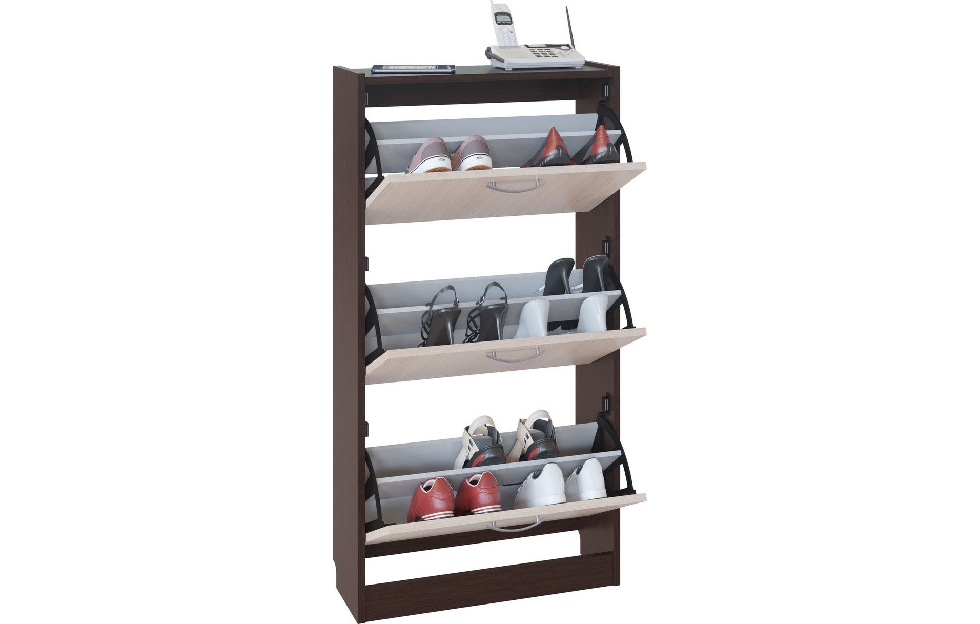 Шкаф для обуви ТО-23 -— Высокая и компактная тумба для обуви в классическом исполнении. Модель имеет три отделения по две полки в каждом и вмещает в себя примерно двенадцать пар невысокой обуви на плоской подошве. Удобно и практично. Благодаря маленькой глубине — всего 220 мм, обувница не будет занимать много места.