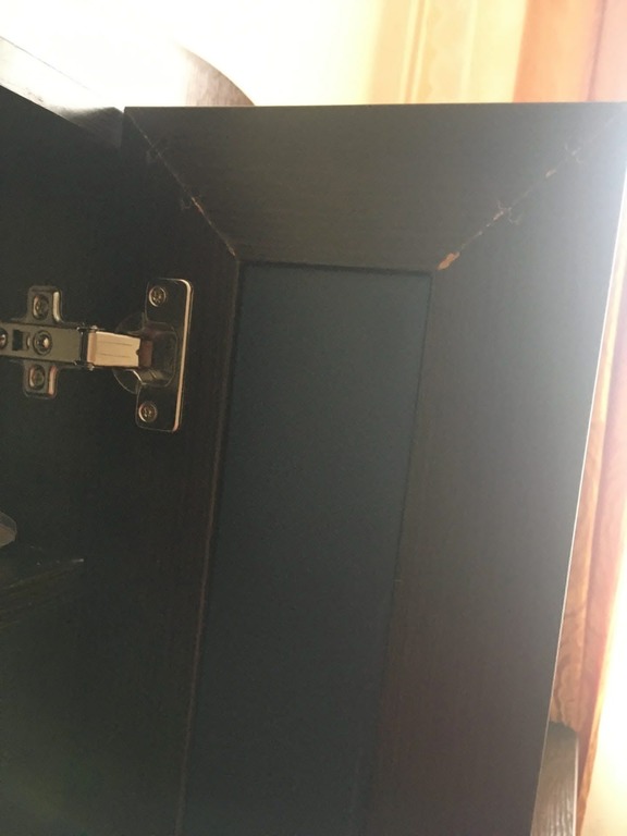 Средний ящик выдвигается не до конца. Если выдвинуть больше, уже вылетает. Местами отходит пленка, но не критично.