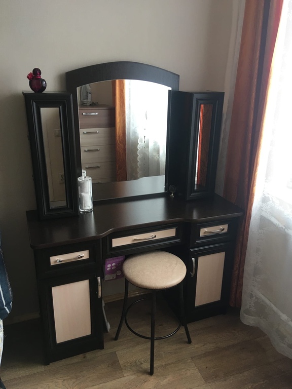 Очень хороший туалетный столик. Много полочек, вместительный.