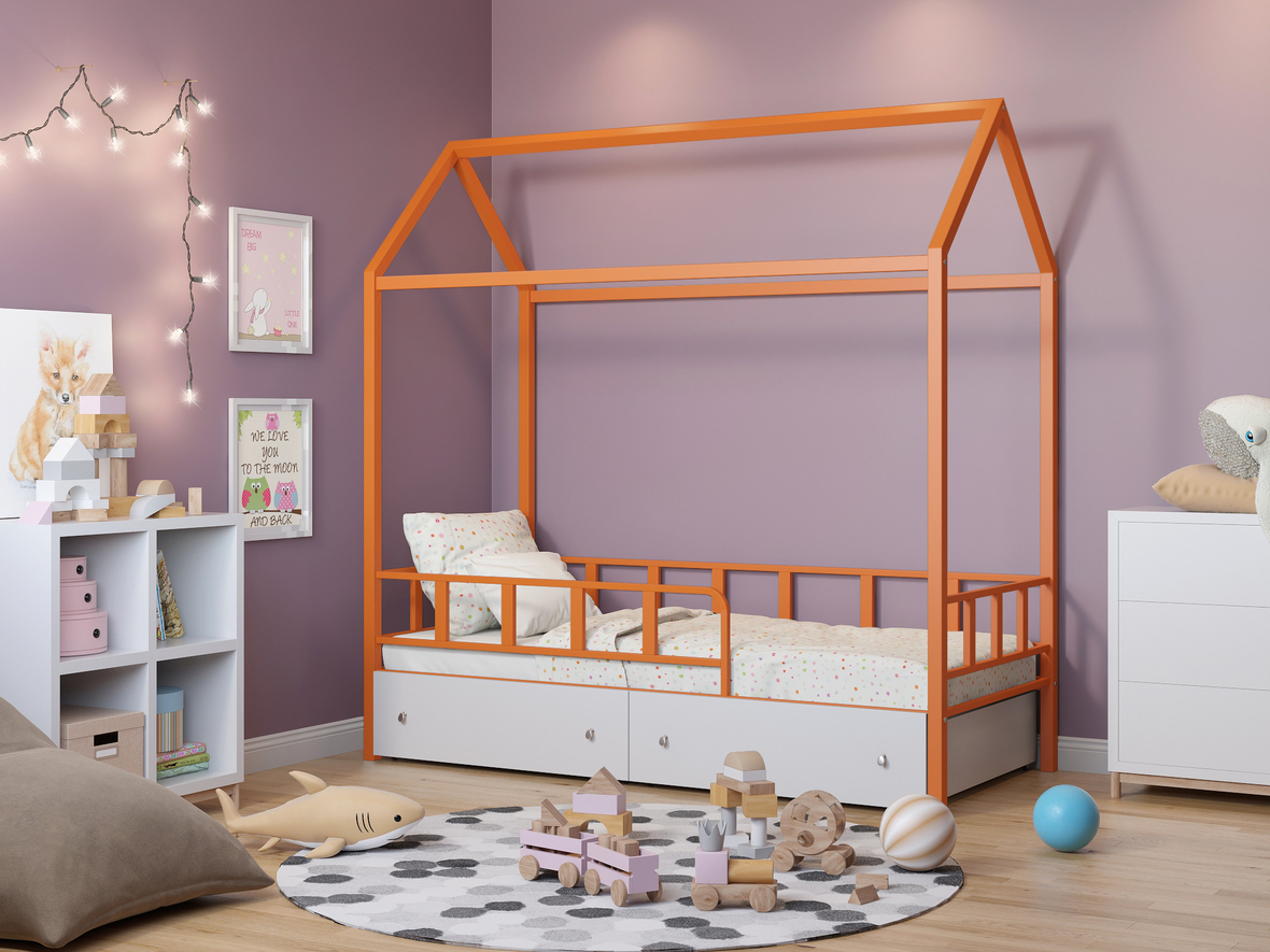 Кровать-домик Риччи ящики белый (Оранжевый)