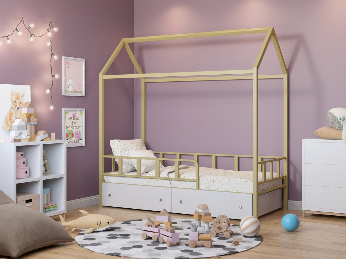 Купили кроватку для дочки, понравилась тем, что необычная, с интересной крышей в виде домика можно придумывать различные вариации дизайна кроватки. Кроватка устойчивая, даже я полежала, на вырост, металлическая кроватка крепкая и устойчивая.