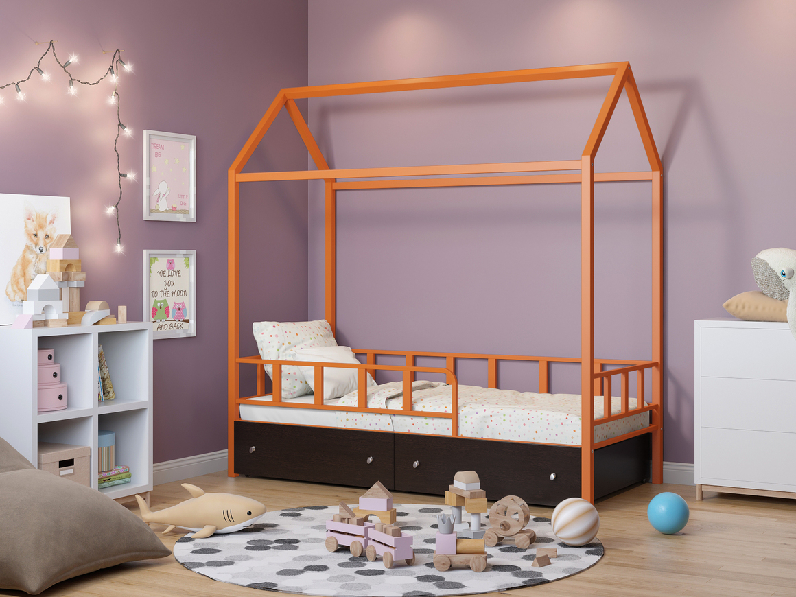 Кровать-домик Риччи ящики венге (Оранжевый)