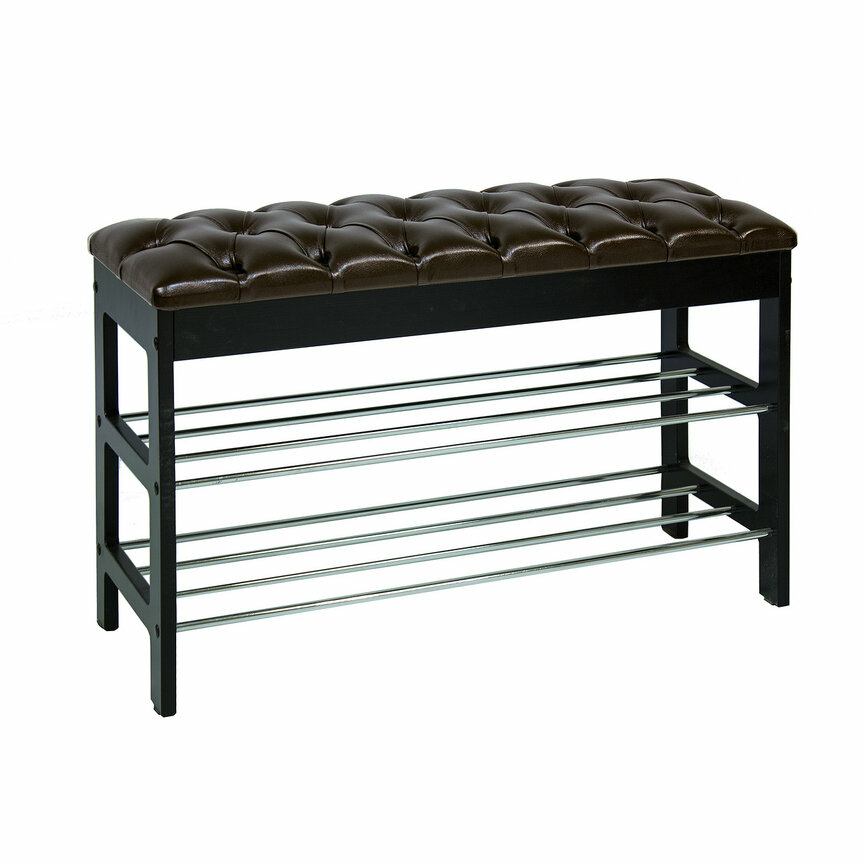Широкая двухместная банкетка с мягким сиденьем и полкой для обуви. Она сделана в незамысловатом дизайне и органично впишется в любой интерьер.