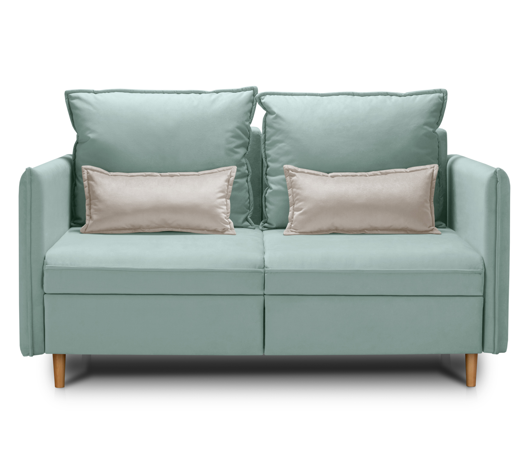 Наполнение. В диване предусмотрены мягкие сиденья на независимом пружинном блоке со съемными чехлами, 4 подушки.