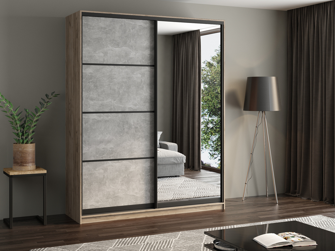 Отзывы о Столплит Шкаф купе 2-х дверный АЙСБЕРГ ЛОФТ 180 +зеркало Бетон серый