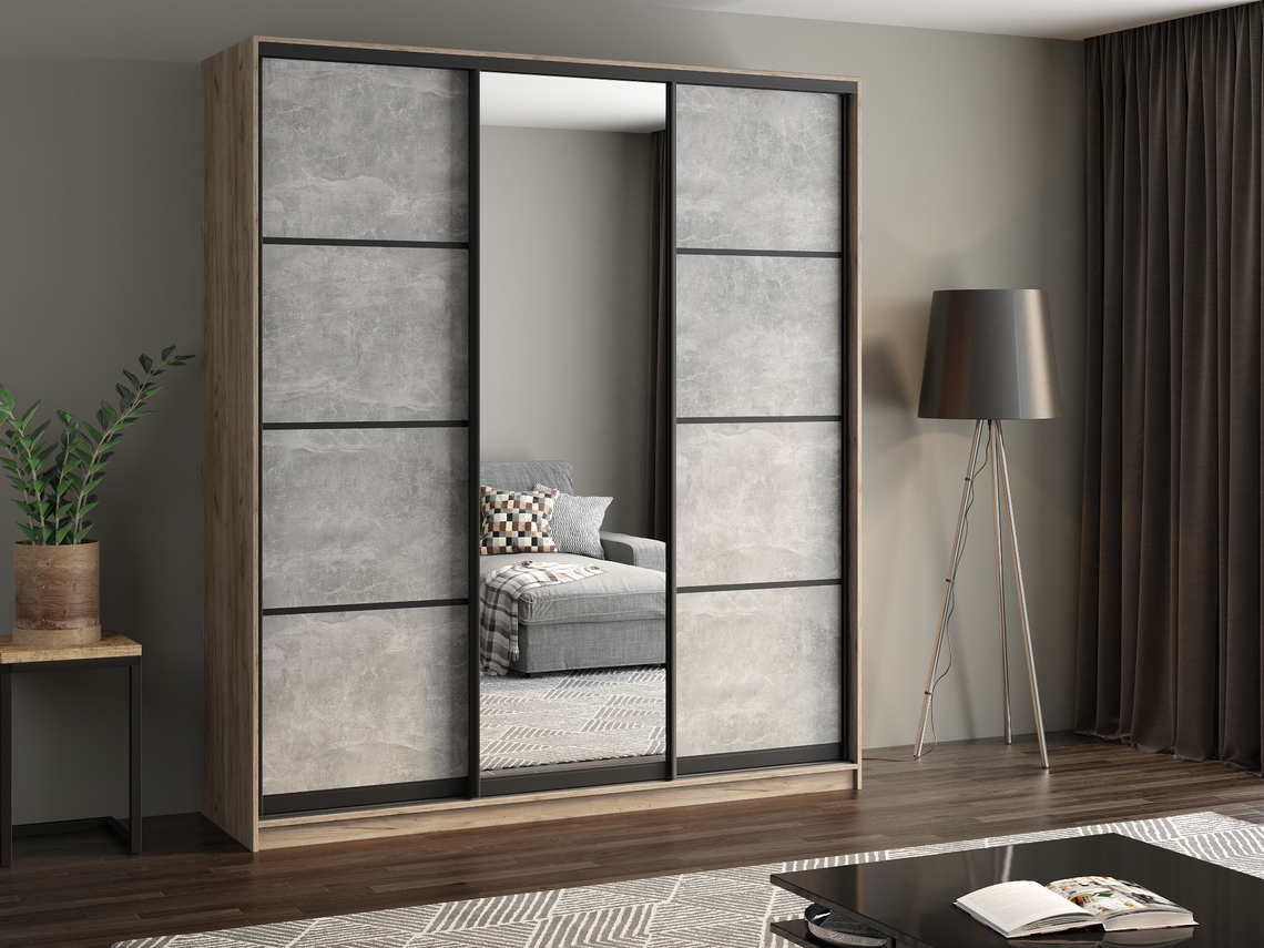 Шкаф купе 3-х дверный АЙСБЕРГ ЛОФТ 210 +зеркало (Бетон серый)