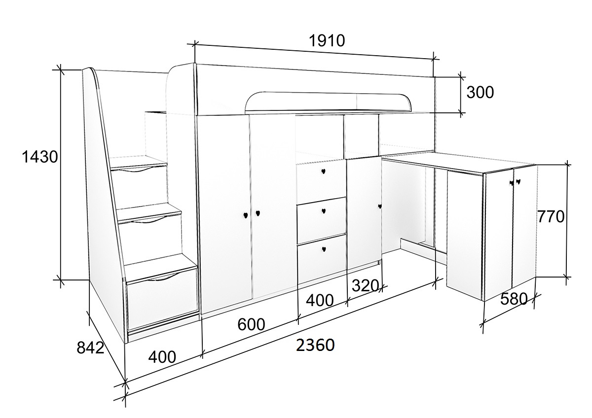 Отличная кровать. Лестница удобная и надежная. Спальное место просторное. Шкафчики на всю глубину кровати. Места для хранения навалом. На лестнице как оказалось просто дверки, а не ящики.