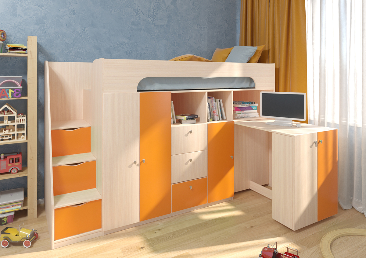 Отзывы о Столплит Кровать-чердак Астра 11 Дуб молочный Оранжевый