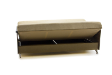 Диван превращается в кровать по принципу книжки. Для этого надо потянуть на себе ближайшее спальное место, и вторая часть пойдёт за ней самостоятельно. Спальные места мягкие и упругие, поэтому спать на кровати очень комфортно.