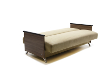 Диван кровать Елена элегантная мебель для тонких ценителей. Модель сделана в духе минимализма. В ней нет ничего лишнего – всё изготовлено с практичной целью. Если использовать мебель в качестве дивана, то для этого предусмотрены подлокотники. Они сделаны из красивого твёрдого дерева, поэтому хорошо выдерживают даже большой вес. Можно сесть на диван, положить руку на подлокотник и отдыхать, читая книжку или просматривая хорошее кино.